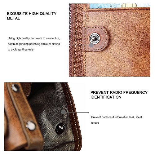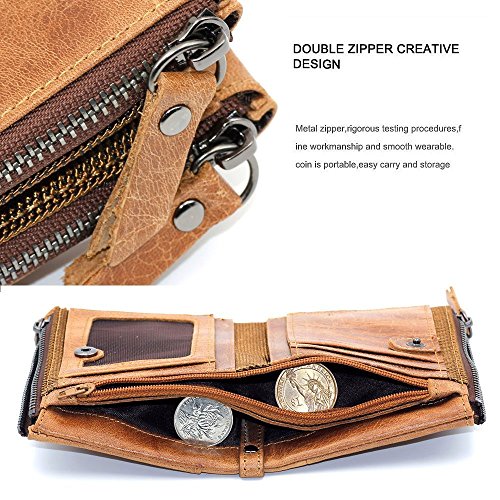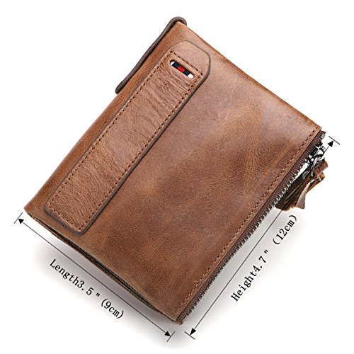 -. Title : Wallets For Men RFID Blocking Bifold Genuine Leather Vintage with Double Zipper Pockets