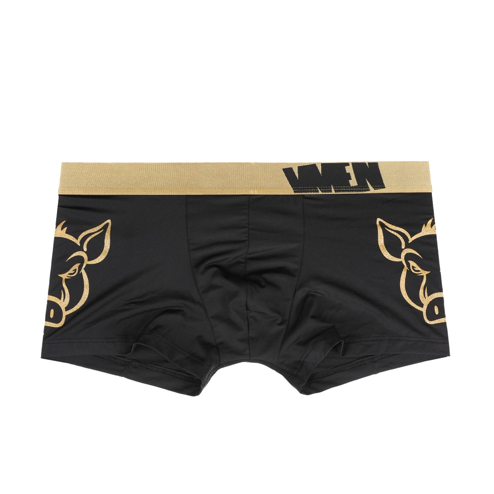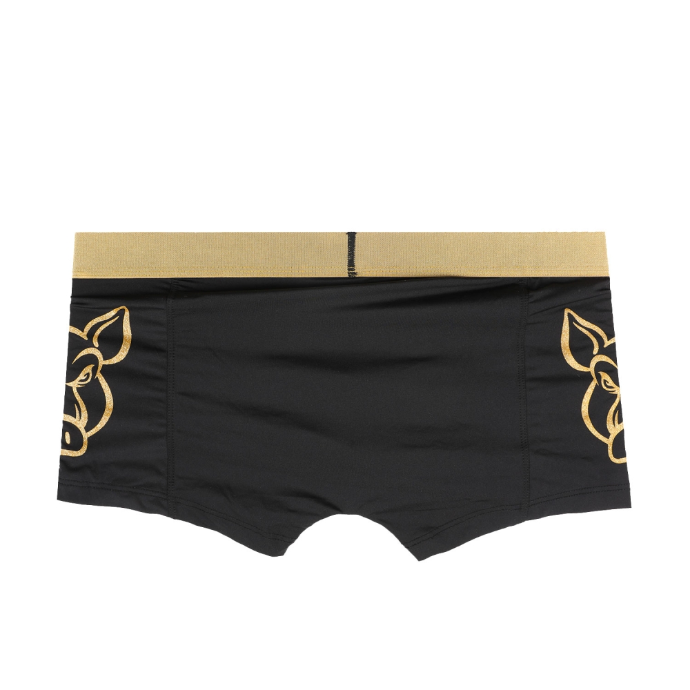 블랙 솔리드 원단에 시크한 골드 돼지 원포인트가 들어간 남성드로즈 제품입니다.