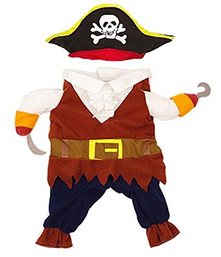 Feature : Made of polyester and non-woven fabric, soft and breathable. This cool pirate costume design turns your pet into a humoristic caribbean pirate. / Its worth it for the laughs! Makes a great gift for the holidays and for entertainment. / This designer pet outfit will bring both style and comfort to the little member in your family.Perfect for Everydays Wear, Weekend Parties, Halloween, Christmas, Birthdays, Weddings, Parades, Photo Shoot or Play date. / Note:Please choose the size carefully in the description / Package include: 1 * Pet Cat Pirate Costume Suit with Hat