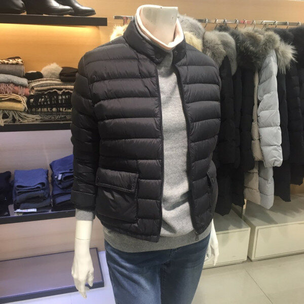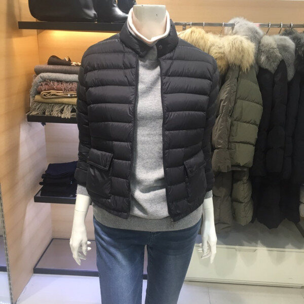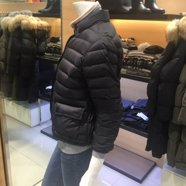 쉬즈미스 목이 살짝올라오는 집업 구스다운점퍼예요 양쪽 주머니가 포인트이구 착용하셨을때 굉장히 귀엽고 가벼워용 롱스커트랑 코디해도 여성스럽고 세련되보여요 55사이즈기준총장은52센치예요