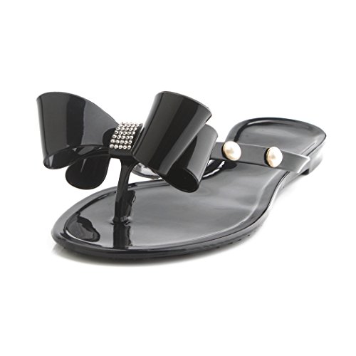 -. Title : AlwaysU Womens Ladies Jelly Shoes Toe Ribbon Bow Diamante Summer Flat Flip Flop Thong Sandals Size