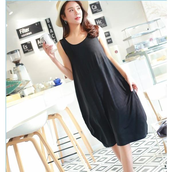 伸縮性のあるモーダル素材のノースリーブワンピース。