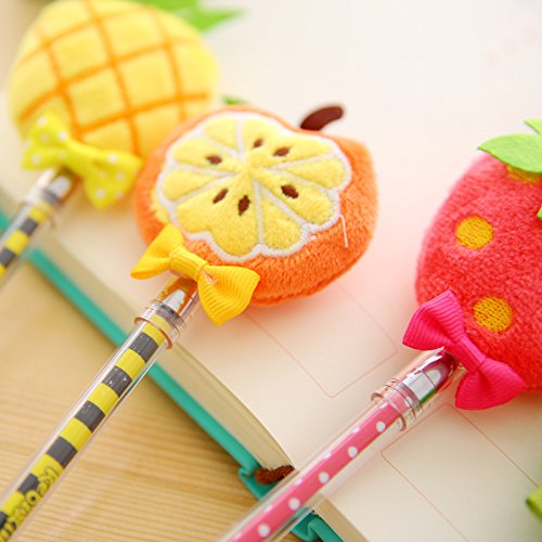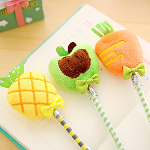 -. Title : Katoot@ 12 pcs/lot Kawaii Creative 3D Plush fruit gel pen Cute apple watermelon Black Ink Signature pen kids Gift Office School Supplies