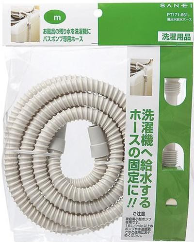 浴槽のお湯を洗濯機に給水する場合の、ホースと給水ノズルのセットです。 製造国:日本 素材・材質:ポリプロピレン、塩化ビニル樹脂 商品サイズ:5m セット内容:ホース、給水ノズル ※サプライヤー直送品 ご注文後2~3営業日後の出荷となります