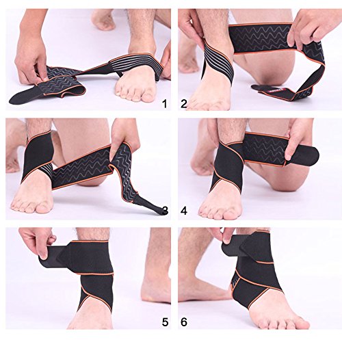 -. Feature : 1. Designed to minimize the risk of injury especially during the strenuous activities, also helps to relieve edema and symp associated with acute injuries, which is ideal for sprains, tendonitis and arthritis. / 2. It is made of cotton and polyester fiber, breathable, perspiration quickly, dry and comfortable, relieve fatigue. / 3.High quality elastic nylon material was used, velcro strapping attached design, fit different size foot, left and right feet are the same. / 4.This is the newest design.We use silicone in side, add the friction, so that non-slip / 5.Package Included 2pcs ankle brace,it suits for men and women.