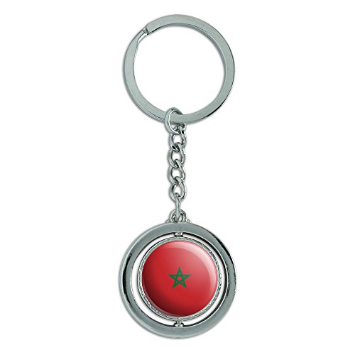 -. Title : Graphics and More Morocco National Country Flag Spinning Round Metal Key Chain Keychain Ring