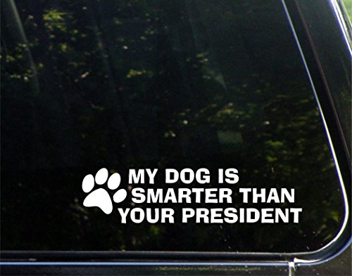 -. Title : My Dog is Smarter Than Your President (9" x 2") Die Cut Decal / Bumper Sticker For Windows, Cars, Trucks, Laptops, Etc.