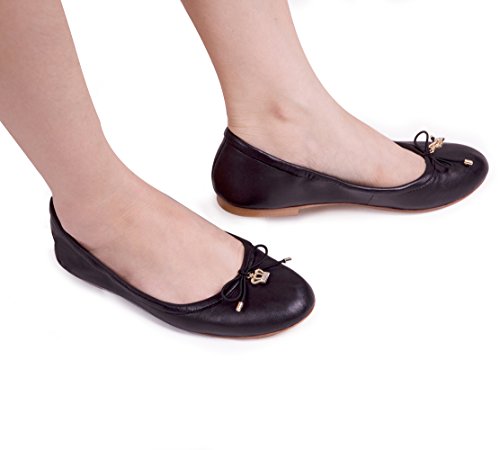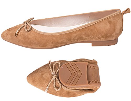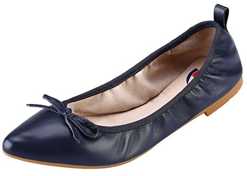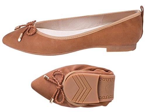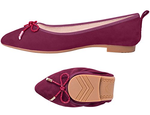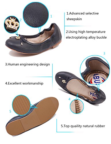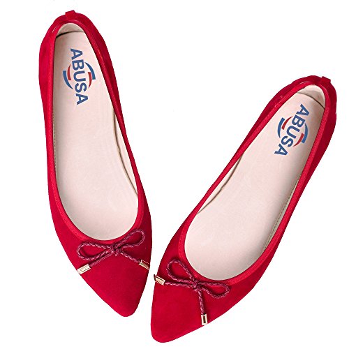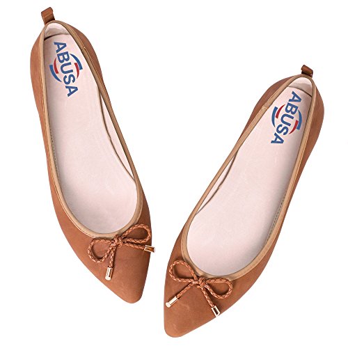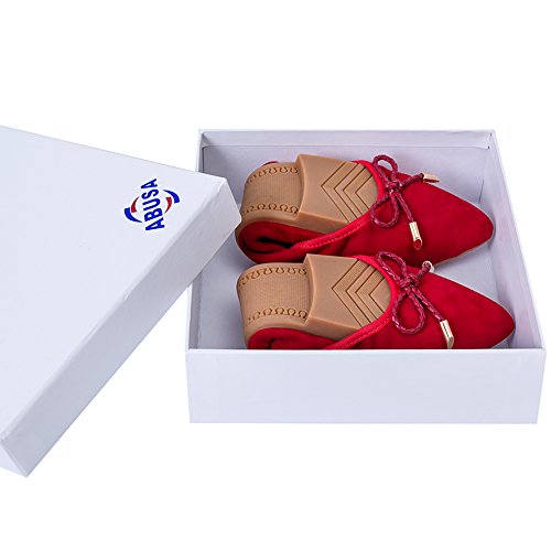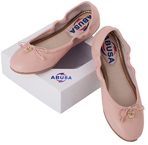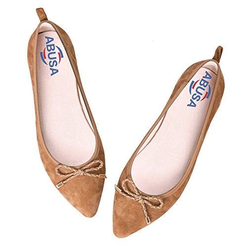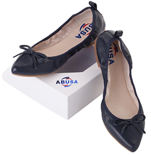 | ABUSA Women's Leather/Suede Ballet Flat Foldable Pointed Toe Shoes |