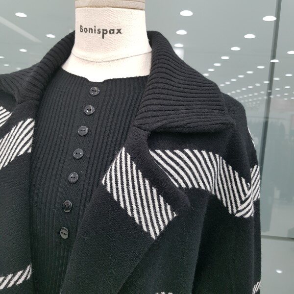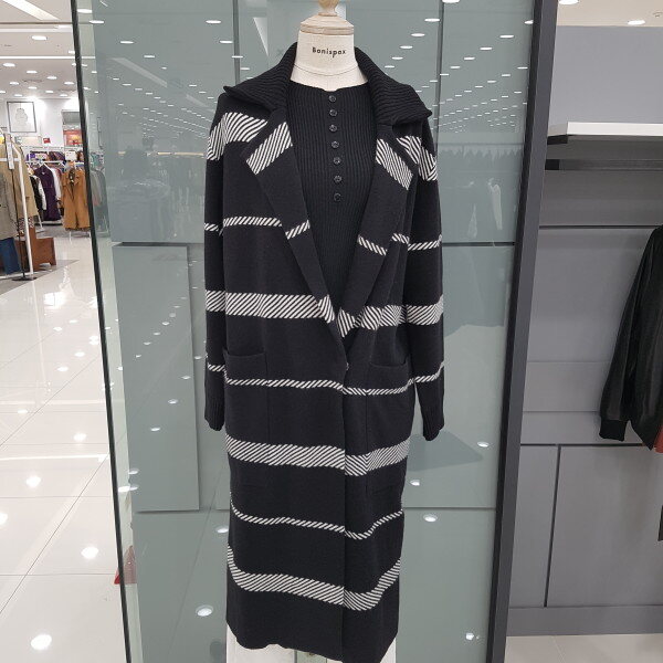 니트 소재의 카라 롱가디건 스타일 입니다