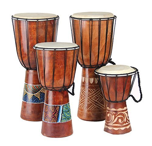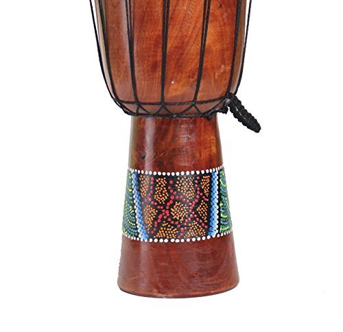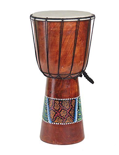 Studio : DharmaObjects Publisher : DharmaObjects Product Description The resonating sound of the Djembe has made it a popular instrument among everyone. Made from a block of hardwood, this traditional percussion instrument features hand Carved tribal design. The Djembe originated in Benin where it is used for voodoo rites and has now been introduced into neighboring countries. Features a genuine goatskin drum head and a macrame carrying loop. Materials: Wood Goatskin. 0