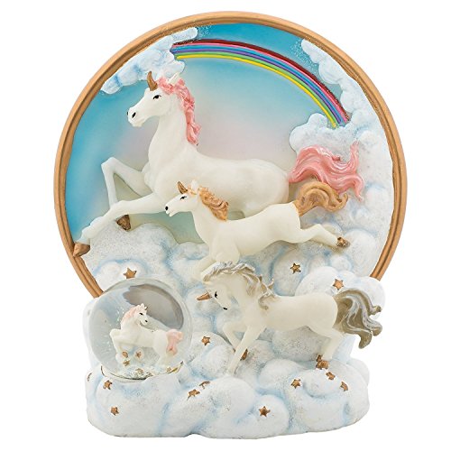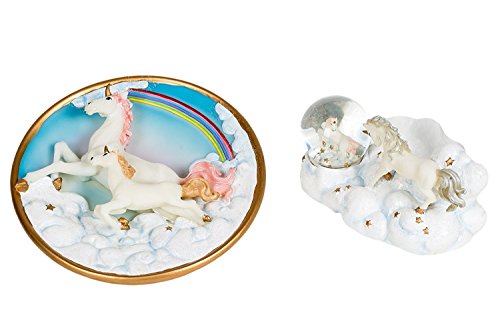 Rainbow Unicorns 6 inch Plate and Miniature 45MM Water Globe Figure Set of 2