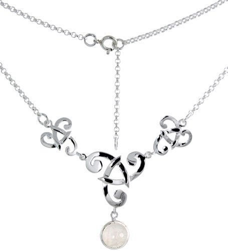 -. Title : Sterling Silver Celtic Fish Trinity Triquetra Knot Necklace with Natural Moonstone, 16 inch long