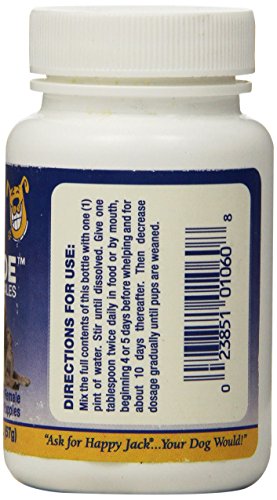 -. Binding : Misc. -. Brand : Happy Jack -. EAN : 0023851010608 -. Feature : Assists in overcoming neuritis of pregnancy due to dietary deficiency / Aids the female in providing a clean, healthy quantity of non-acidic milk after whelping / Prevents the loss of pups in the first few days after whelping -. IsAutographed : 0 -. IsMemorabilia : 0 -. Label : Abbott Laboratories -. Manufacturer : Abbott Laboratories -. Model : 1060 -. MPN : 1060 -. PackageQuantity : 1 -. PartNumber : 1060 -. ProductGroup : Pet Products -. ProductTypeName : PET_SUPPLIES -. Publisher : Abbott Laboratories -. Studio : Abbott Laboratories -. Title : Happy Jack Milkade, 2-Ounce -. UPC : 023851010608
