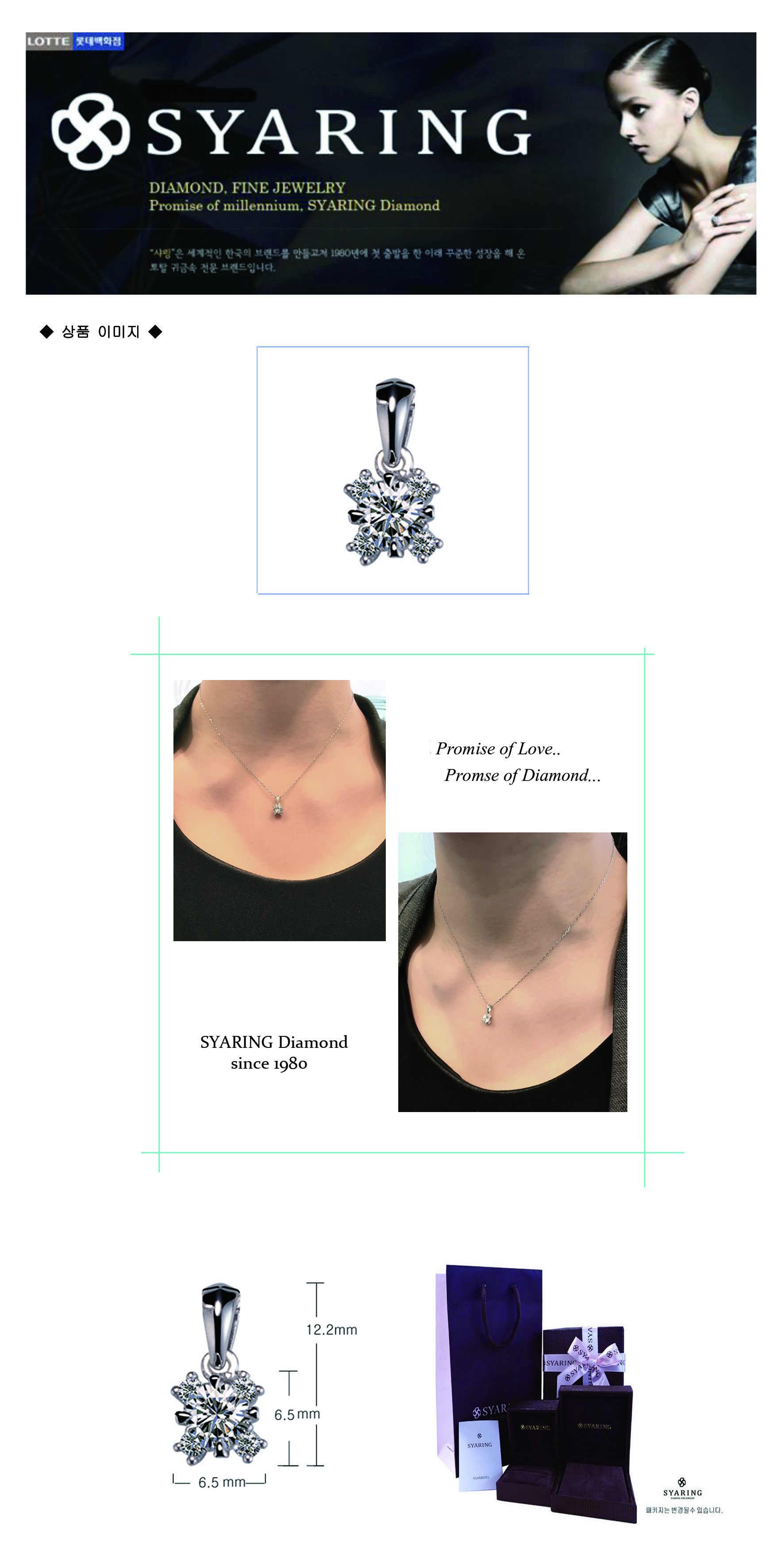 | 참 고 사 항 | * 중량표기는 평균중량이므로 약간의 오차가 있을 수 있습니다. * 보증서 기본 제공하나, 다이아몬드감정서는 2부 이상에만 발행됩니다. * 펜던트 상품에는 체인 미포함입니다. * 샤링의 모든 제품은 고객 한분, 한분을 위한 주문제작 상품이므로 주문취소 할 경우에는 주문 당일 24시간 이내에만 가능합니다. * 주문제작 상품은 구매 후 단순 변심인 경우, 교환 및 반품이 불가하오니, 주문전에 신중한 구매결정을 부탁 드립니다. * 주문 이후 취소 및 반품시 주문제작 위약금 10%(소비자가기준)를 지불하신 후 취소 가능합니다.
