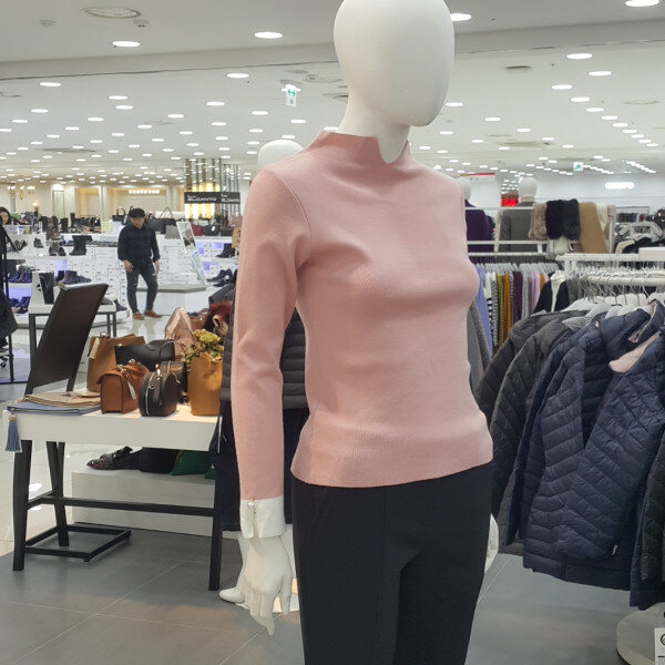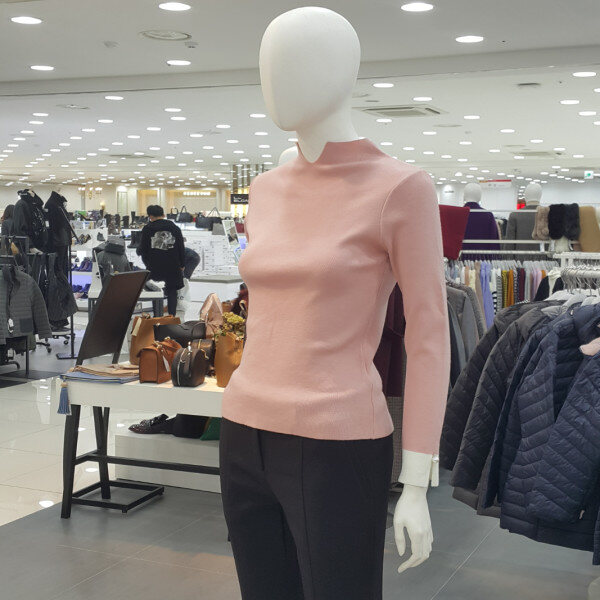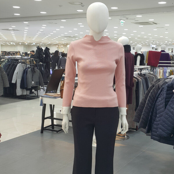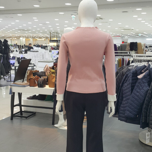 기본니트티셔츠에 목트임라인고 소매배색 진주장식이포인트되는 니트티셔츠입니다