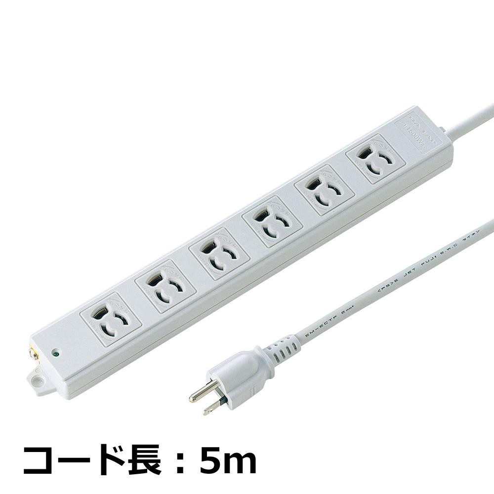 6個口(3P抜け止め)、3Pプラグ(絶縁キャップ付き)のタップです。塩ビを使用しないハロゲンフリーのエココード(エコケーブル)を採用しています。耐燃性ポリエチレン混合物を使用して、燃やしてもダイオキシンが発生いたしません。 |