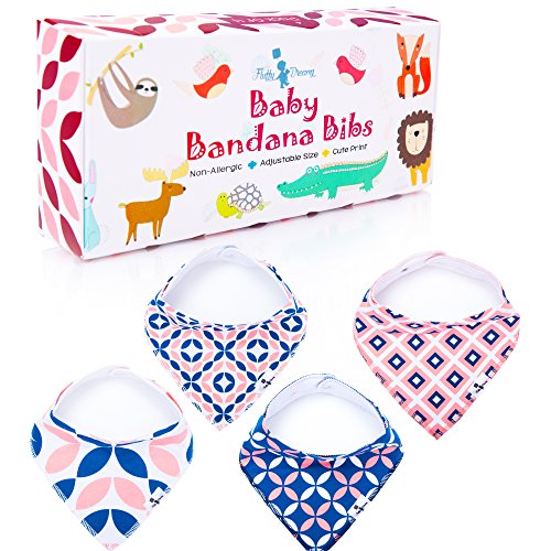 -. Binding : Apparel -. Brand : Fluffydreamz -. Color : Pink -. Department : unisex-baby -. EAN : 0748079805262 -. Feature : MOM's FAVORITE BABY BANDANA DROOL BIBS in the handy 4 pack gift set. These are well made, soft ,safe for baby, and have the loveliest P.R.Ints and colors we've seen. Stylish baby pink and blue colors combine with innovative modern yet traditional P.R.Ints. Comes in attractive Gift Box with cute animal illustrations. / * NON-ALLERGENIC 100% ORGANIC COTTON that is very absorbent. Keeps baby dry and free of skin irritation. Helps safeguard against rashes while relieving and soothing red irritated skin. Just what you need for teething and drooling babies. BONUS EBOOK - How to Raise a Healthy Child / MAKES MEAL TIME FUN with these lovely designs while effectively protecting baby's nice clothes. You'll get a lot more wear without having to wash so often. Adjustable Nickel-Free Snaps lets you put the bibs on baby in one second while making sure he or she gets a perfect, custom fit. Designed for 3 months all the way to 6 years. / DRESS UP AN OUTFIT with these stylish bibs. Just what you need when taking baby for a quick trip to the store, to library story time, to Grandma's house, or over to play with friends. These have an elegant design that makes your baby chic and fashionable wherever she or he goes. / 100% MONEY BACK GUARANTEE ensures this will quickly become your favorite no-risk purchase. Simply return unused. Many people are stocking up with 2 or 3 sets so they always have plenty of premium quality bandana bibs on hand. HURRY AND BUY NOW while we have this very popular bib set in stock. This makes a great gift for baby showers, baby birthdays, and just because you love baby so much. Wonderful for friends, family, and co-workers - anyone with a baby or small child! -. IsAdultProduct : 0 -. NumberOfItems : 4 -. PackageQuantity : 1 -. ProductGroup : Baby Product -. ProductTypeName : BABY_PRODUCT -. Size : Medium -. Title : Fluffy Dreamz : Pink Baby Bandana Drool Bibs 4 Pack for Girls. Absorbent Organic Cotton for Drooling & Teething. Non-Allergenic, Adjustable Size, Colorful Patterns, Attractive Gift Box + Ebook -. UPC : 748079805262