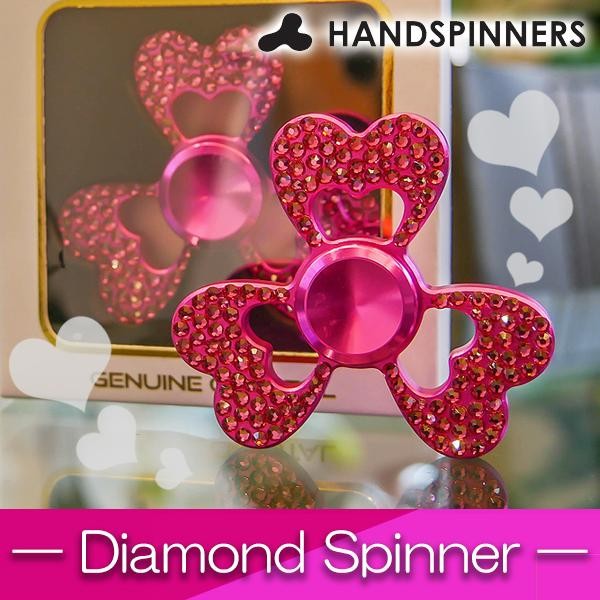 | 可愛いハートデザインのハンドスピナーです。回すと、羽部分のクリスタルがキラキラ光ります。手に持って指先でグルグルと回すシンプルなアイテムです。 |