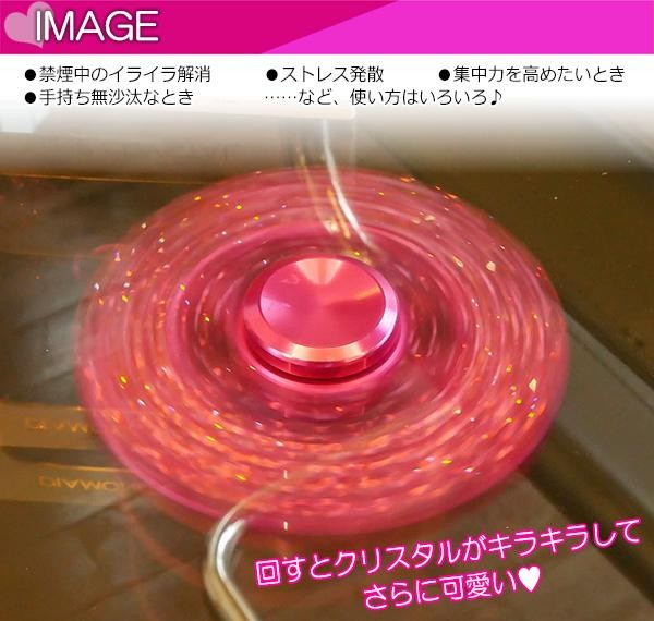 可愛いハートデザインのハンドスピナーです。回すと、羽部分のクリスタルがキラキラ光ります。手に持って指先でグルグルと回すシンプルなアイテムです。 |