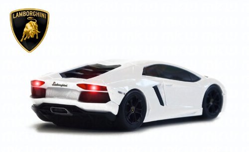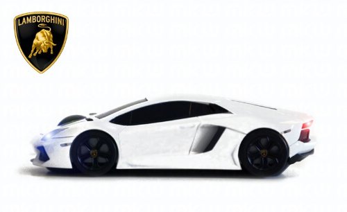 The Lamborghini Aventador LP 700-4 wireless mouse comes in several colours. This particular model is painted "white" with an incredibly detailed finishing. It fits comfortably in the hand and has three buttons and a new type of scroll wheel providing better grip.
