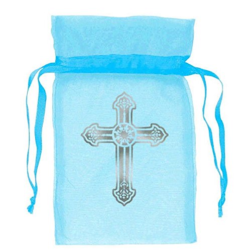 Blue Organza Bags with Cross (12)