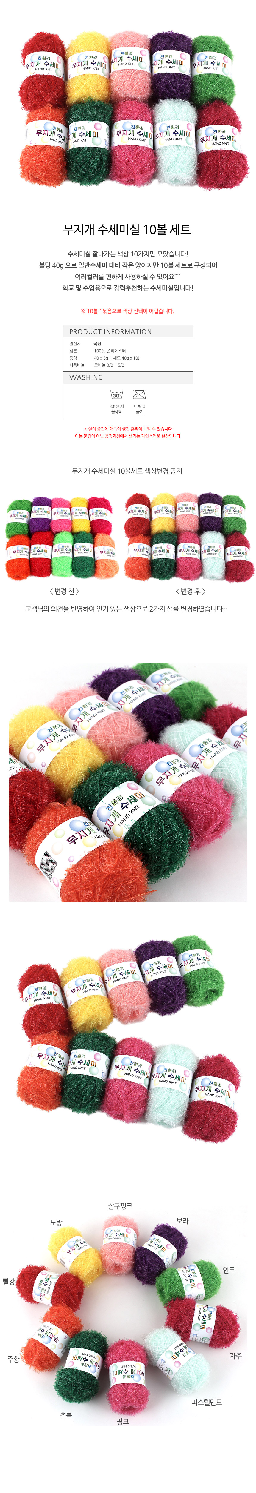 색상 선택이 어려우셨던 분들 또는 학교 단체 수업용으로 최적인 수세미실이 출시되었습니다.