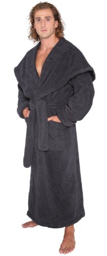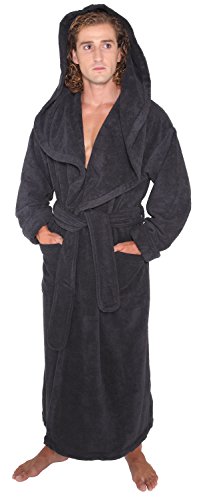 Arus Men's Monk Robe Style Full Length Long Hooded Turkish Terry Cloth Bathrobe, Large, Black