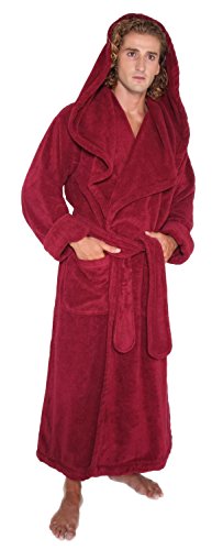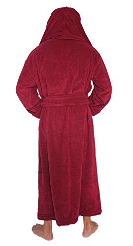 Arus Men's Monk Robe Style Full Length Long Hooded Turkish Terry Cloth Bathrobe, Large, Burgundy
