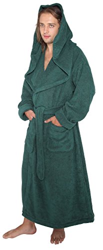 Arus Men's Monk Robe Style Full Length Long Hooded Turkish Terry Cloth Bathrobe, Large, Hunter Green