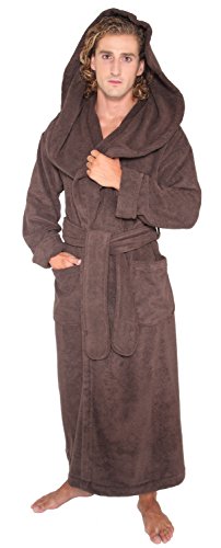 Arus Men's Monk Robe Style Full Length Long Hooded Turkish Terry Cloth Bathrobe, Large, Chestnut Brown