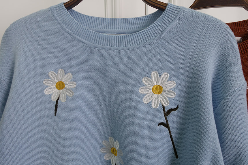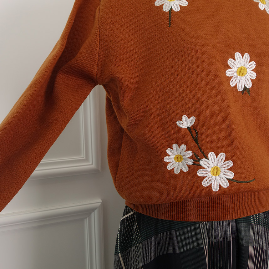 Chrysanthemum flower knit embroidery Pastel tone Autumn twenties Female statue Sale Sense of frie