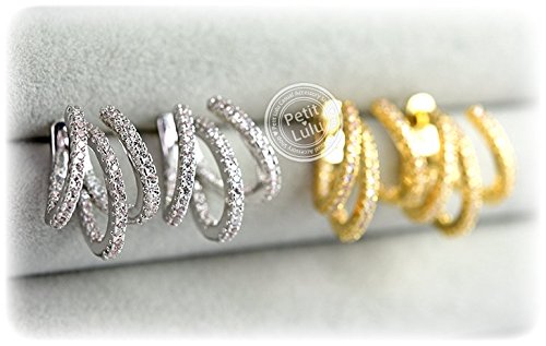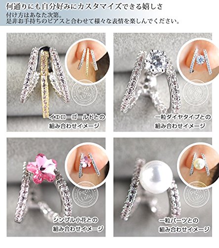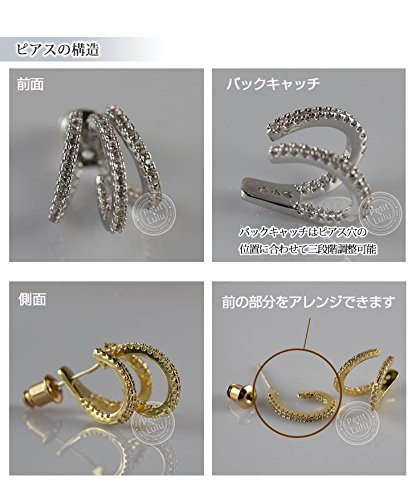 3つのラインに細かに敷き詰められたダイヤモンドCZの眩い煌めきは、見る方向によっていろんな表情を見せてくれ、個性あふれるピアスとなっています。
