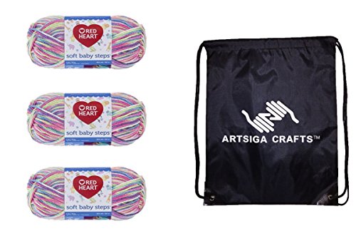Bundle Includes 3-Pack of Red Heart Soft Baby Steps Yarn Giggle E746-9937 with 1 Artsiga Crafts Project Bag