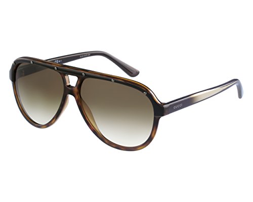 Studio : Gucci Publisher : Gucci Binding : Eyewear Product Description Italian luxury fashion house Gucci have been creating pieces for almost nine decades and their constant innovation and quality never ceases to impress. These Gucci GG 3720/S HYA 59 Stud Brow Aviator Sunglasses in Havana Black are part of Gucci's latest seasonal collection and their take on classic Aviator is not only creative but effortlessly stylish. Crafted in Havana black acetate, these Gucci sunglasses feature edgy stud detail which adds plenty of attitude to this understated design. Contrasting with 59mm brown gradient lenses, these Gucci sunglasses are perfectly presented with a Gucci travel case to carry your pair around the world. 0