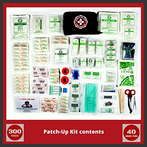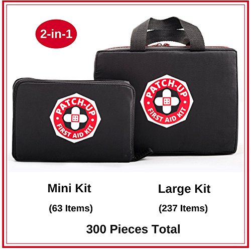 NEW & UPGRADED, BE READY WHEN 'LIFE HAPPENS' - Patch-Up 2-in-1 First Aid Kit now includes a Large Kit (9"X7"X4") containing 237 items, and a Mini Kit (8"X6"X1.5") containing 63 pieces. That's 300 pieces total, with 40 unique items to care for individuals, groups and large families. Designed for home, outdoors & all sporting activities including marathon running, soccer, football, baseball, basketball, biking, & boating. 'Must have' gear for travel, hikers, backpackers and wilderness adventures.