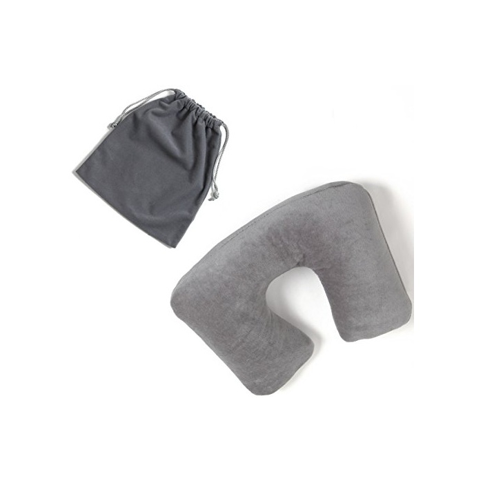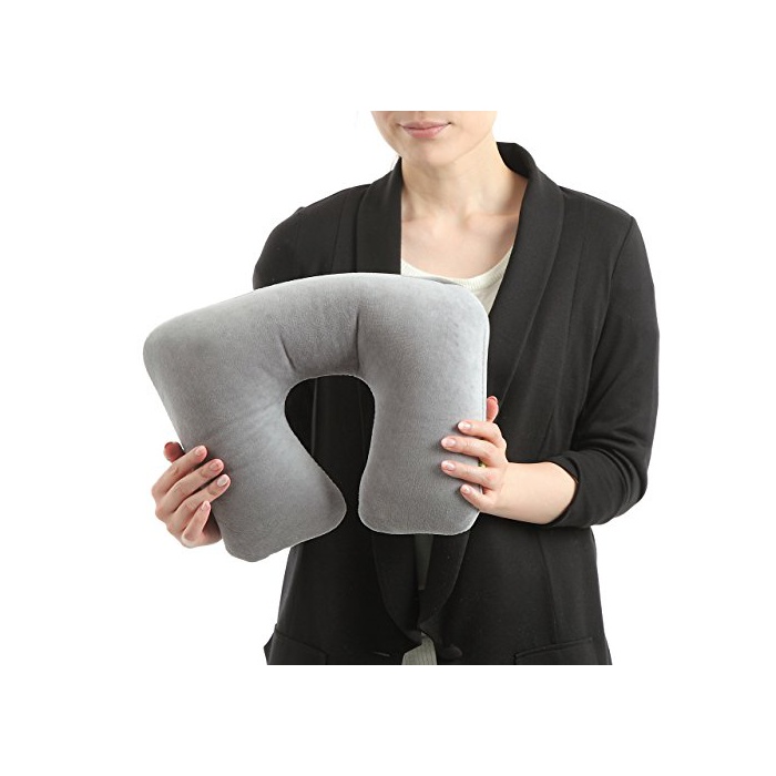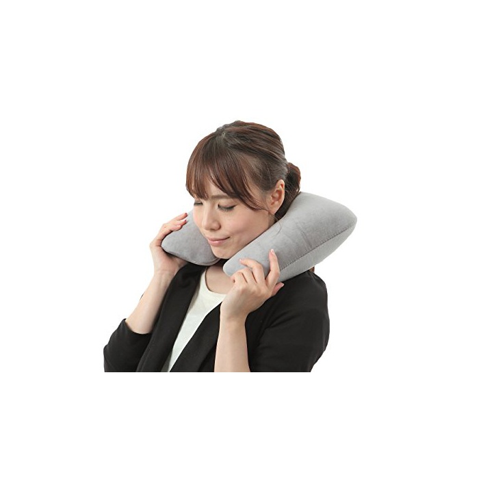 휴대형 접는 트래블 에어 넥 pillow 씻을 수 있는 커버 운반에 편리한 수납 파우치부 그레이 AKEMIDO
