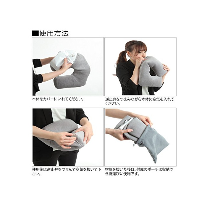 원본상품명: 携?型 折り?み トラベルエア? ネックピロ? 洗えるカバ? 持ち運びに便利な?納ポ?チ付 グレ? AKEMIDO