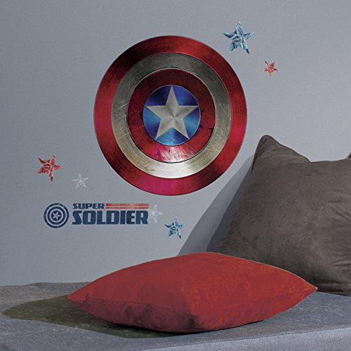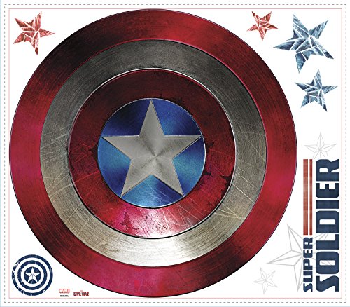 -. Binding : Tools & Home Improvement -. Brand : RoomMates -. EAN : 0034878978215 -. Feature : Comes with 7 wall decal; Decals range in size 2 inch wide x 2 inch high to 16.5 inch wide x 16.5 inch high / Easy to apply - just peel and stick / Applies to any smooth surface / Decals are removable and repositionable with no sticky residue / Wall Decals made in the USA -. Label : RoomMates -. Manufacturer : RoomMates -. Model : RMK3247GM -. MPN : RMK3247GM -. NumberOfItems : 1 -. PackageQuantity : 1 -. PartNumber : RMK3247GM -. ProductGroup : Home Improvement -. ProductTypeName : BUILDING_MATERIAL -. Publisher : RoomMates -. Studio : RoomMates -. Title : RoomMates RMK3247GM Captain America Shield Civil War Peel and Stick Giant Wall Decals -. UPC : 034878978215