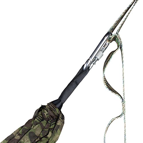 HAMMOCK SPECIFICATIONS: 9’10” x 6’6”. Double Hammock Size (XL). 12 foot tree straps (set of 2) with 20 adjustable loops and individual nylon carrying bag. Lightweight and compact. Parachute hammock itself is ultralight only 1.2 lbs. 2 high quality screw lock wide gate carabiners.