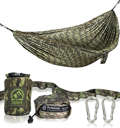 Explore Outfitters PRO Nylon Double Hammock - Large - With Tree Straps - Best Portable Parachute Hammock For Camping, Travel, Outdoors, Backpacking