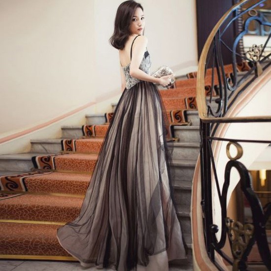 ふわっとひろがるスカートが華やかなロングドレスです。