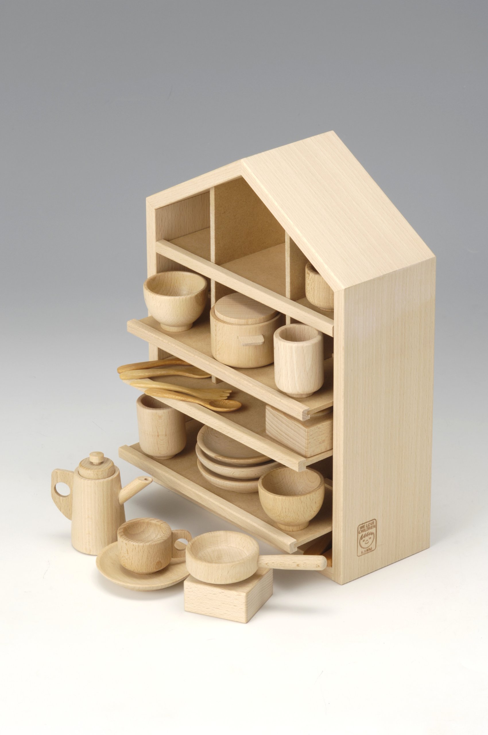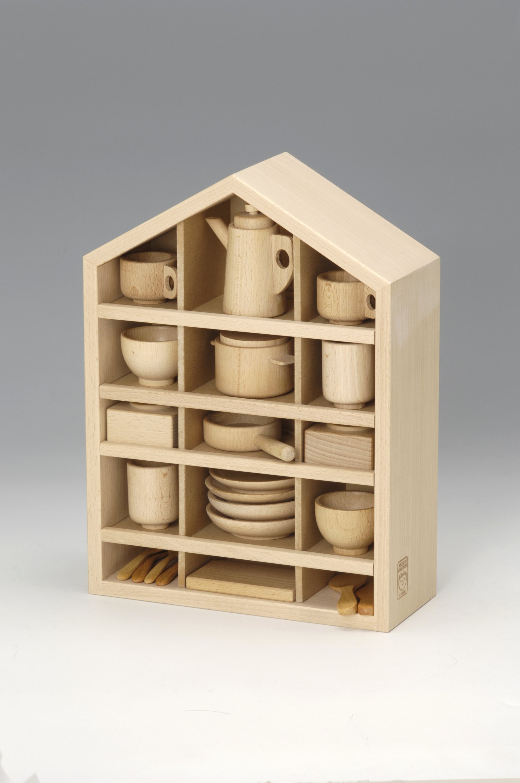 In a full-blown house playing set that takes advantage of the goodness of the material, the storage box has become a cupboard shaped in the shape of a house.
