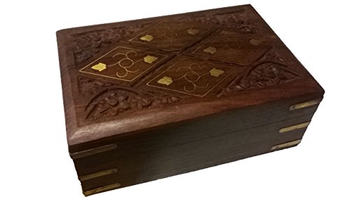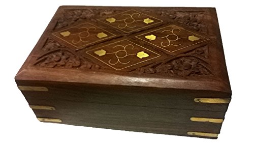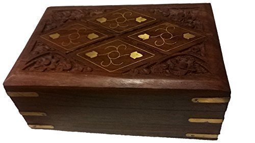 Crafted using the finest richly hued timber Rosewood and further adorned with an exquisite brass inlay of Diamond Shaped motifs and a hand carved floral trellis border.