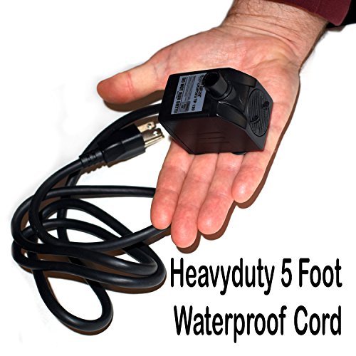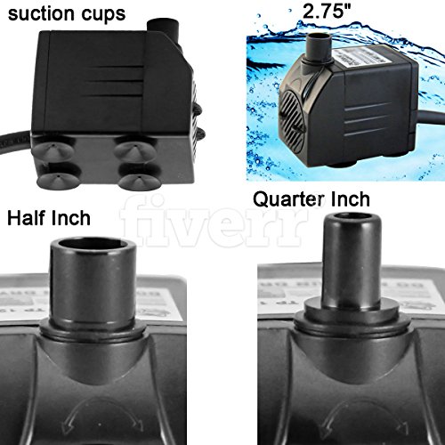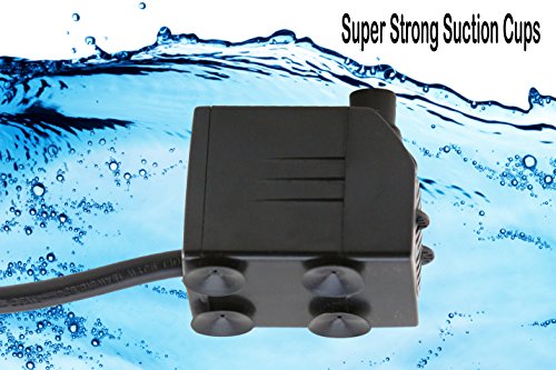 - COMPACT & DURABLE- this submersible, fountain water pump, pond pump is only 2.58" x 1.61" x 1.94" and is extremely lightweight, durable and is secured by four individual powerful suction cup feet that will lock on to any surface.