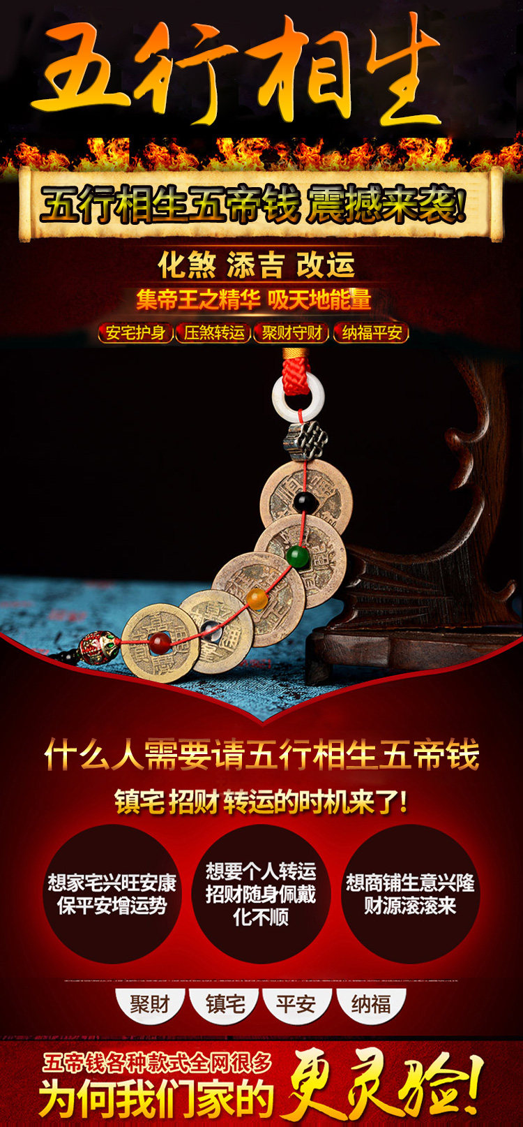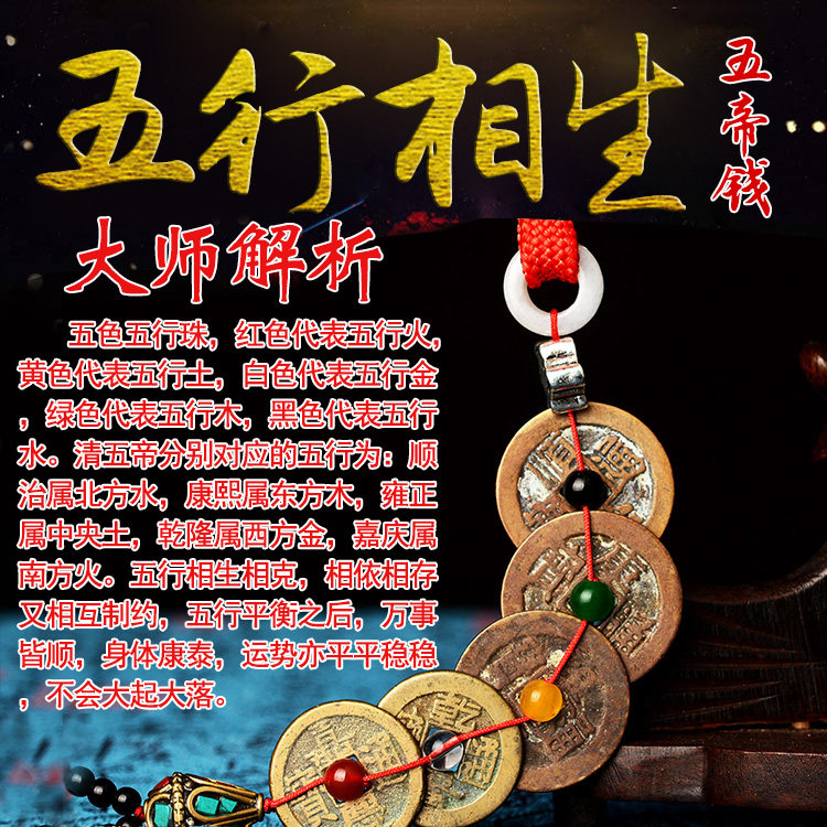 开光真品五行转运五帝钱五帝铜钱 清代纯铜古钱币招财钱