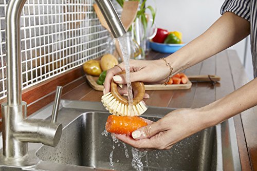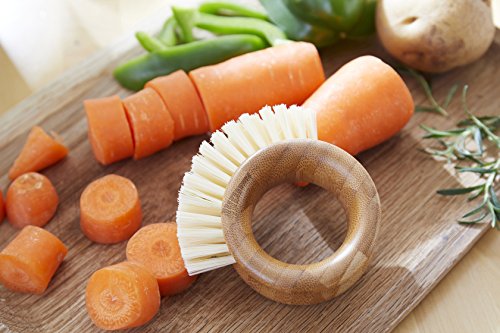 - ♻ RING VEGGIE BRUSH: This stylish vegetable brush cleans all produce from apples to zucchini, has a comfy handle, which lets you clean with ease, and is made with a combination of tough recycled bristles and more gentle plant fiber bristles.