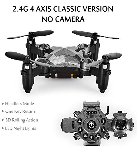 Studio : Ingear Publisher : Ingear Product Description New watch style remote control, the quadcopter it's easy to operate and very practical, you can put in the pocket and carry anywhere. - CREATIVE PORTABLE WATCH STYLE CONCEPT: This Kids Drone design inspiration comes from the concepts of classical ship rudder, classical noble telephone dial and portable watch. The integration of these 3 concepts, we design a new creative watch style controller. Multiple play modes, easy to control. - ONE KEY RETURN: Press the button of one key return (the remote controller sounds "BEBE"),the drone will return automatically. You can push the right lever up to correct the channel if off course. Press the button of one key return again, the drone end return. Or push the right lever up to end return. - FOLDABLE AEROFOIL MOVABLE SHAFT: With four movable shafts and blades, this design not only makes the palm-sized drone compact, durable and flexible, but also prevent users from being cut and provide better and safer using experience. - Worry Free Guarantee: Every Drone, customer enjoys 25-days money back. For any possible defective products, please contact us first, and we will provide a satisfy solution for you very soon. 0