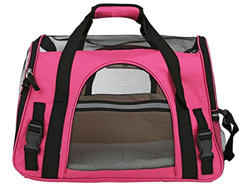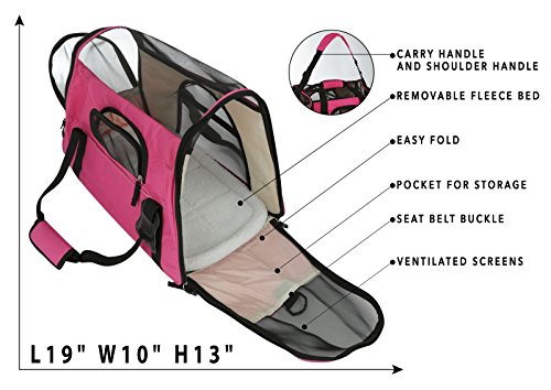 -. Feature : Soft- Sided Airline-Approved pet carrier-INCLUDES FREE PET TOY BALL. / PREMIUM MATERIAL: made of durable, comfortable, safe, and breathable material with ventilated screens. Includes a removable fleece bed for easy clean and pockets to storage meds, toys, treats, etc. Holds up to 22lbs. / AIRLINE-APPROVED: Great for travel. Safe and secure. Approved by most airlines.(this bag is designed to comply with most major airline requirement.However, it is advised to check with the airline beforehand since restictions and requirement vary with each airline) / MORE CONVENIENCE AND MORE COMFORT- Safety Seat Buckle makes travel easy. Your pet will be kept safe and calm throughout. Easy access to pet without the risk of escape. / INCLUDES: Pocket for storage, Safety seat buckle, Padded Shoulder strap and carry handle, and removable fleece bed. Folds easily for convenient storage.
