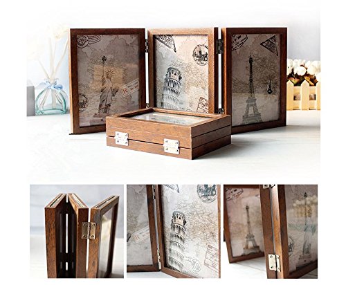 - Brown three fold six glass frame with,Choose your favorite colors can be replaced with their own photos, each frame can replace 6 photos.