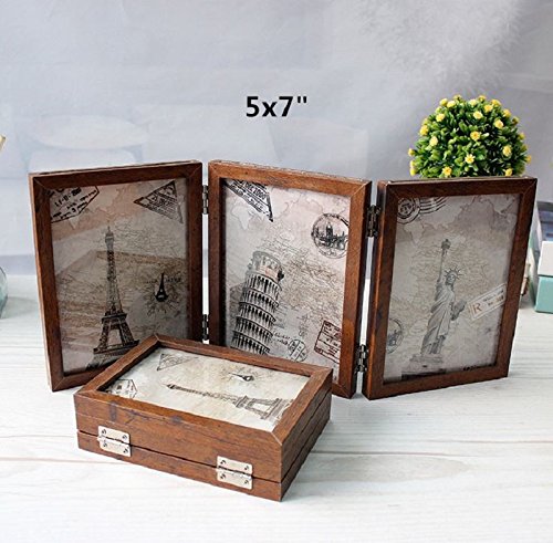 leoyoubei 3-Opening Hinged Collage Frame, 6 photos show double-sided photo frame silver-color Hinges, Folding Photo Frame With Glass Front(5X7 Brown )